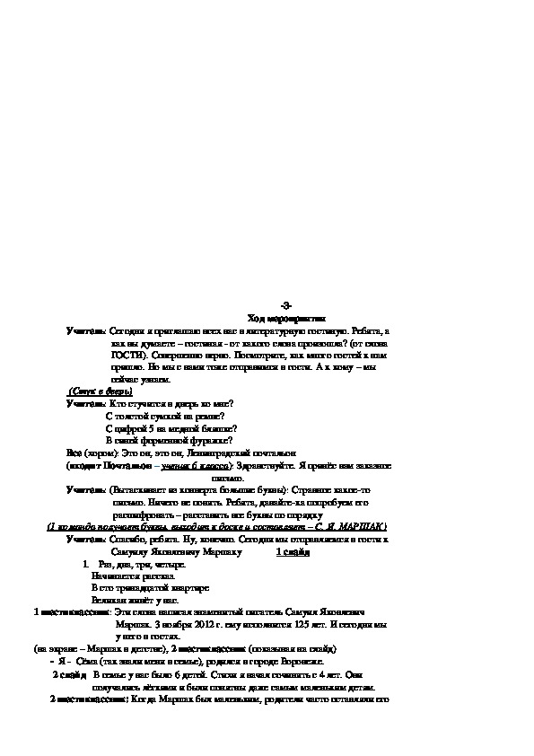 Маршаку. В 3 классе мы будем отмечать юбилей этого удивительного