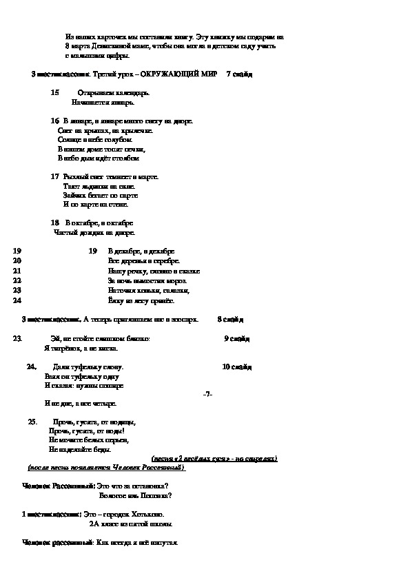 Учитель: Давайте споём песенку, которую мы учили на уроке чтения. С какого