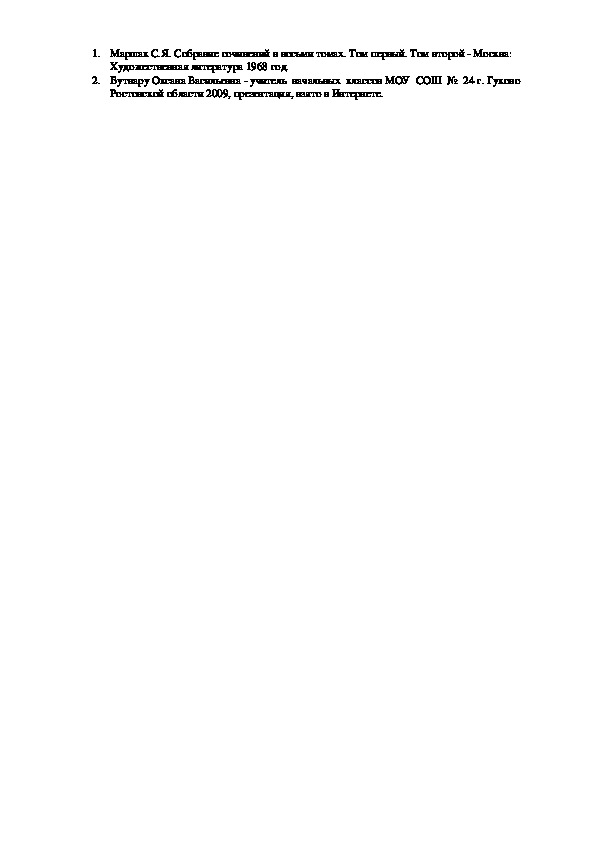 Литература:1. Маршак С.Я. Собрание сочинений в восьми томах. Том первый. Том второй Москва: