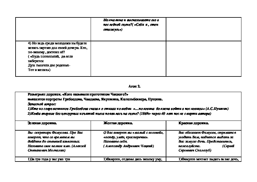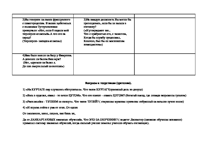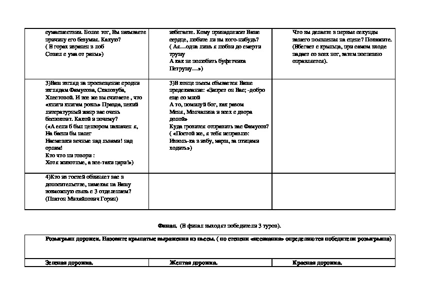 вопросы, не касающиеся собственно текста пьесы), может использоваться как форма урока обобщения после изучения пьесы (тогда