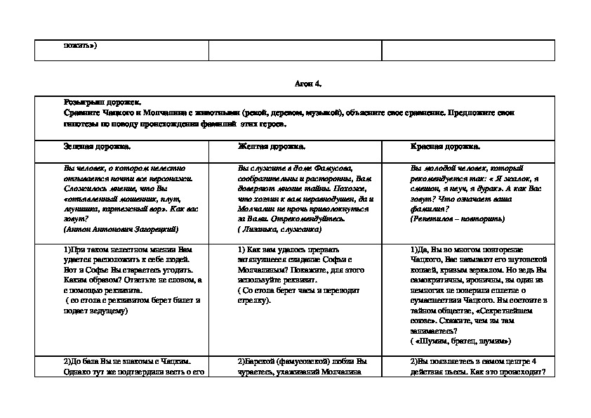 Игра может быть использована в качестве проверки знаний по содержанию пьесы перед её изучением (тогда надо пересмотреть