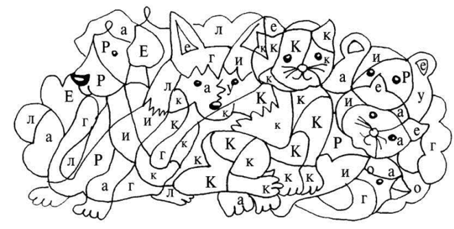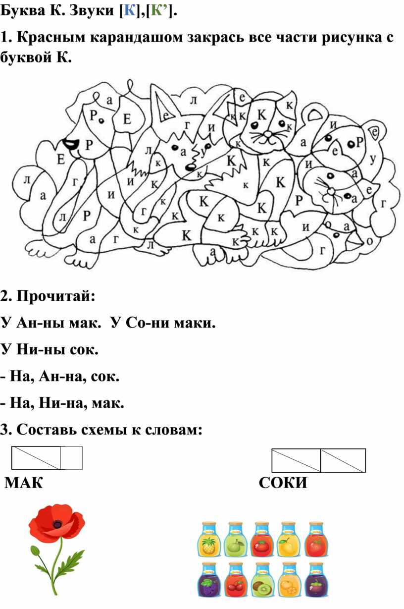 1. Красным карандашом закрась все части рисунка с буквой К.