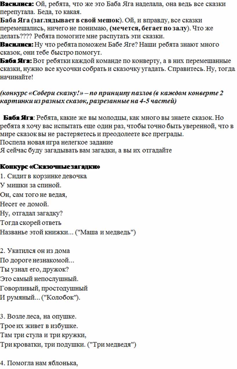(конкурс «Собери сказку!» – по принципу пазлов (в