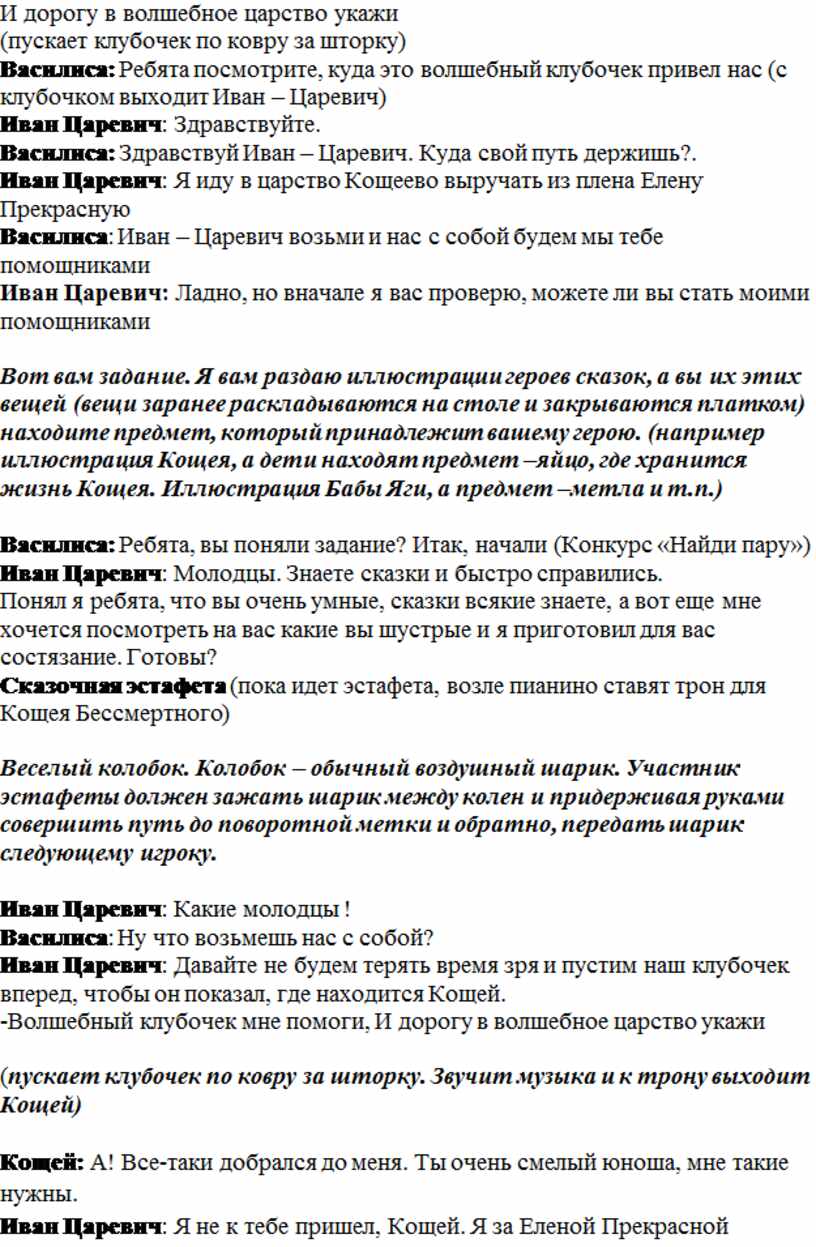 эстафета, возле пианино ставят трон для Кощея Бессмертного)