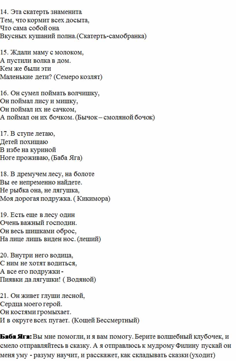 сказок, а вы их этих вещей (вещи заранее раскладываются на столе и закрываются