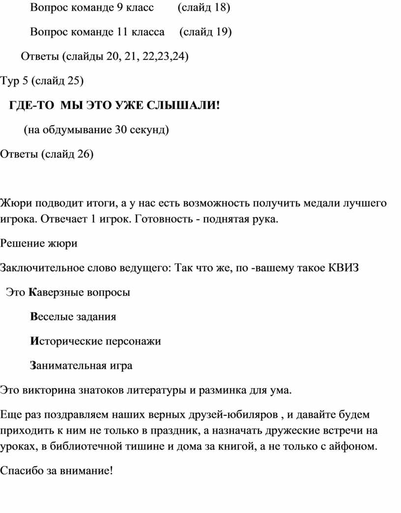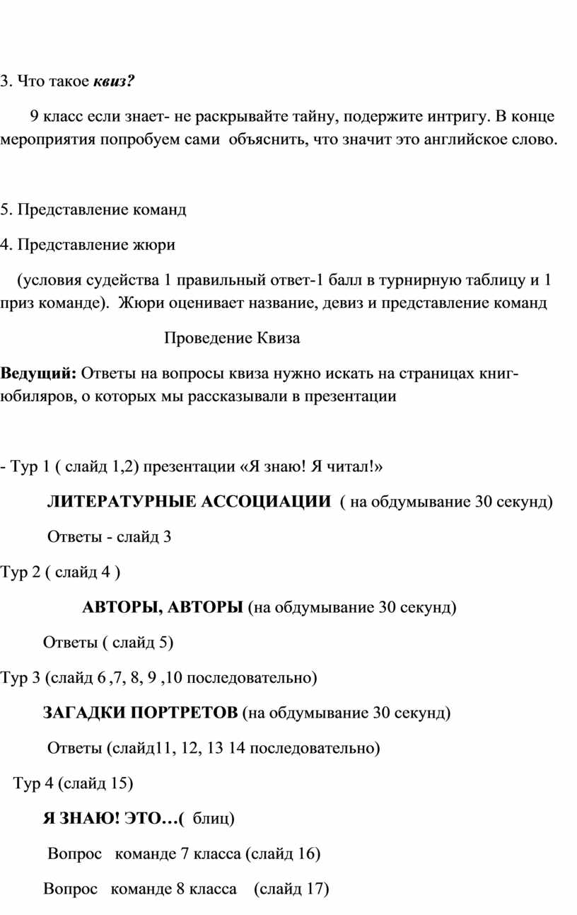 Ведущий: Ответы на вопросы квиза нужно искать на страницах книг-юбиляров, о которых мы рассказывали в презентации