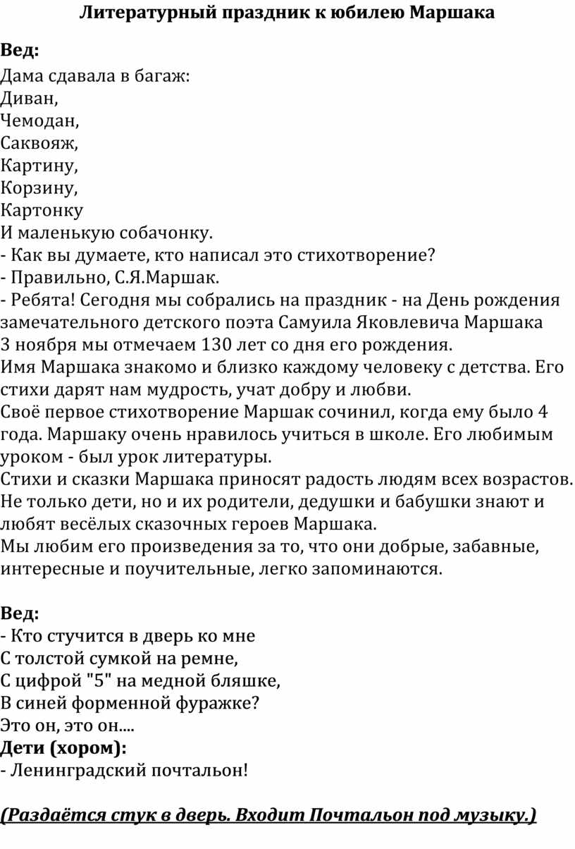 - Ребята! Сегодня мы собрались на праздник - на День рождения замечательного детского поэта Самуила Яковлевича Маршака
