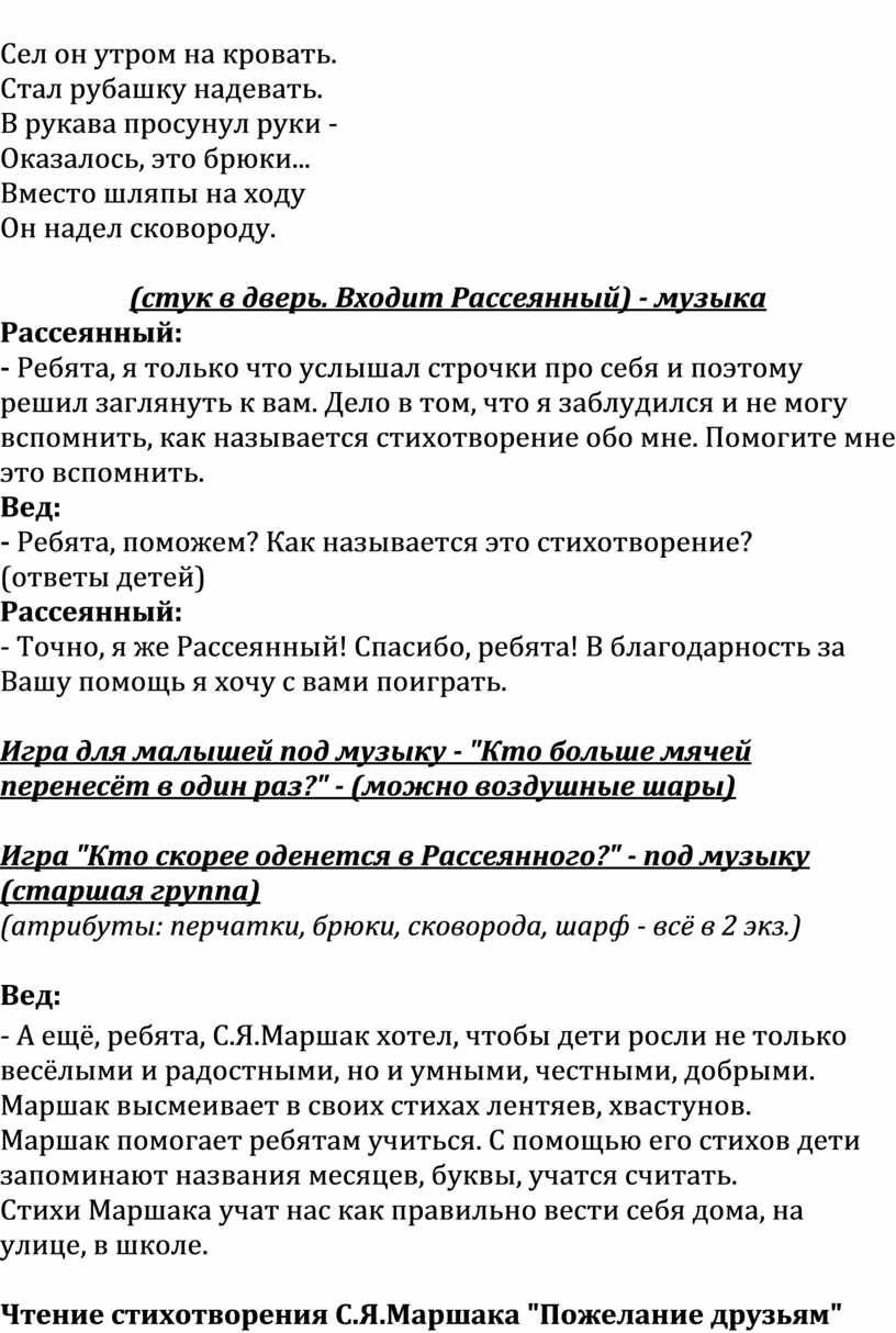 - А сейчас я прочитаю вам несколько строчек из очень известного стихотворения Маршака:
