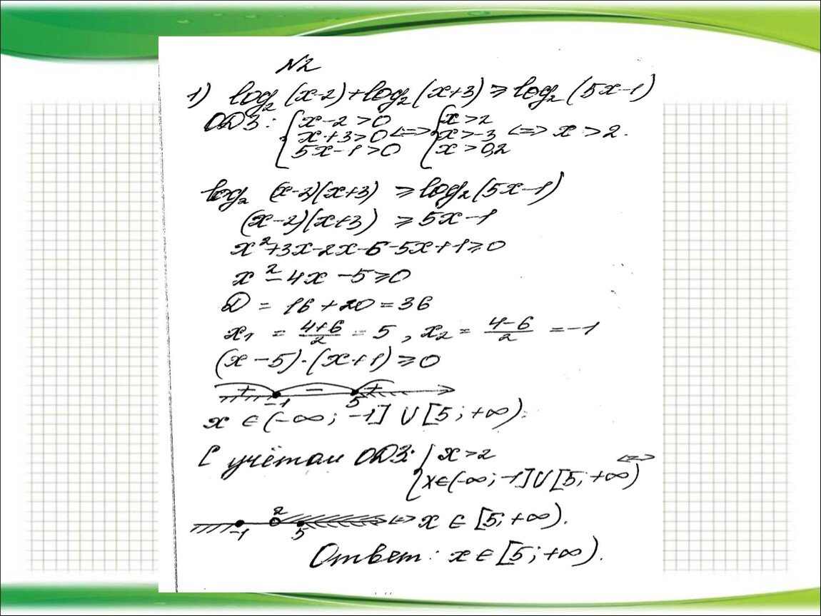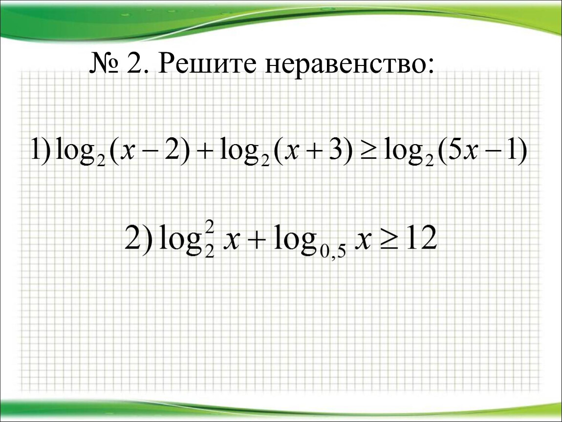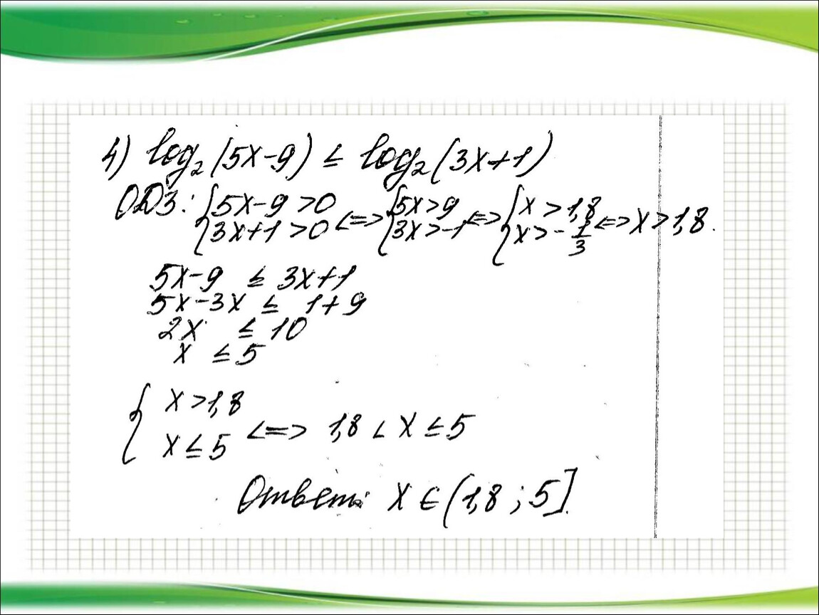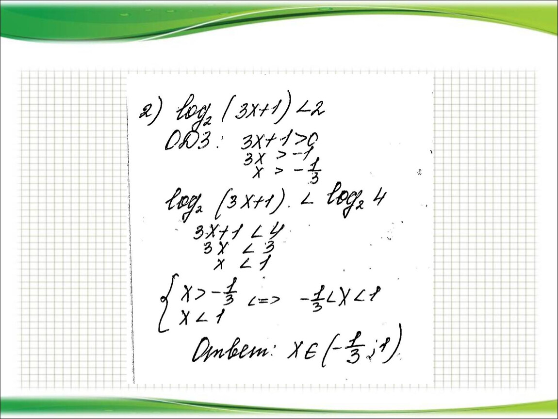2) Представить (если возможно) левую и правую части неравенства в виде логарифмов по одному и тому же основанию.