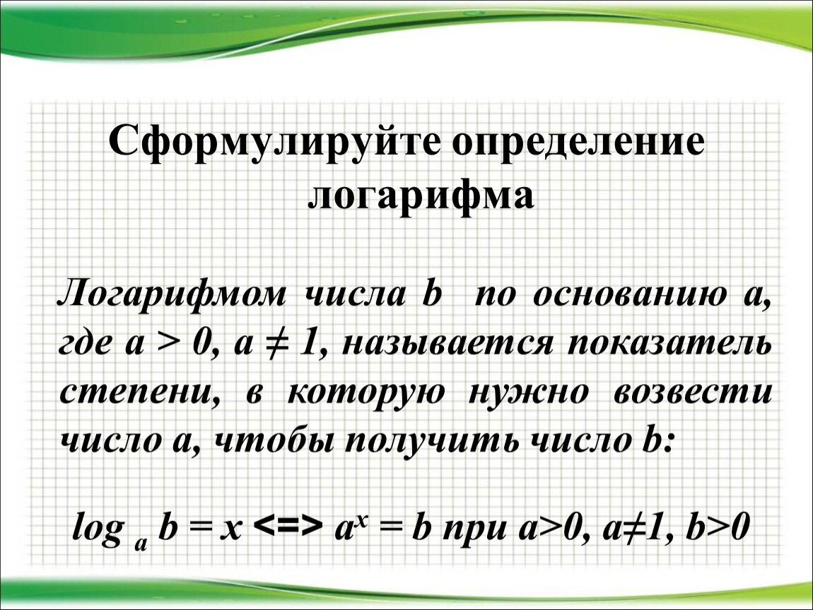 Сформулируйте определение логарифма
