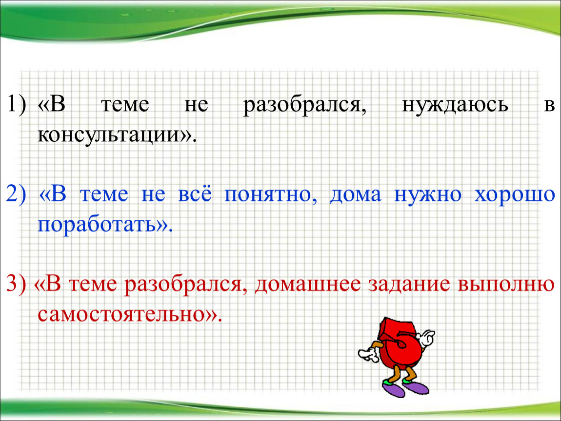 2) «В теме не всё понятно, дома нужно хорошо поработать».