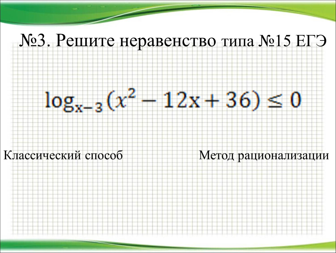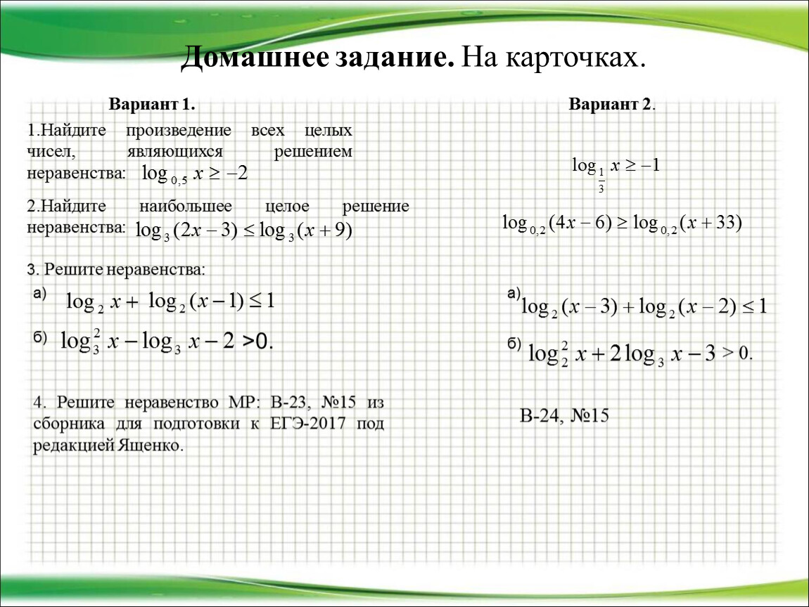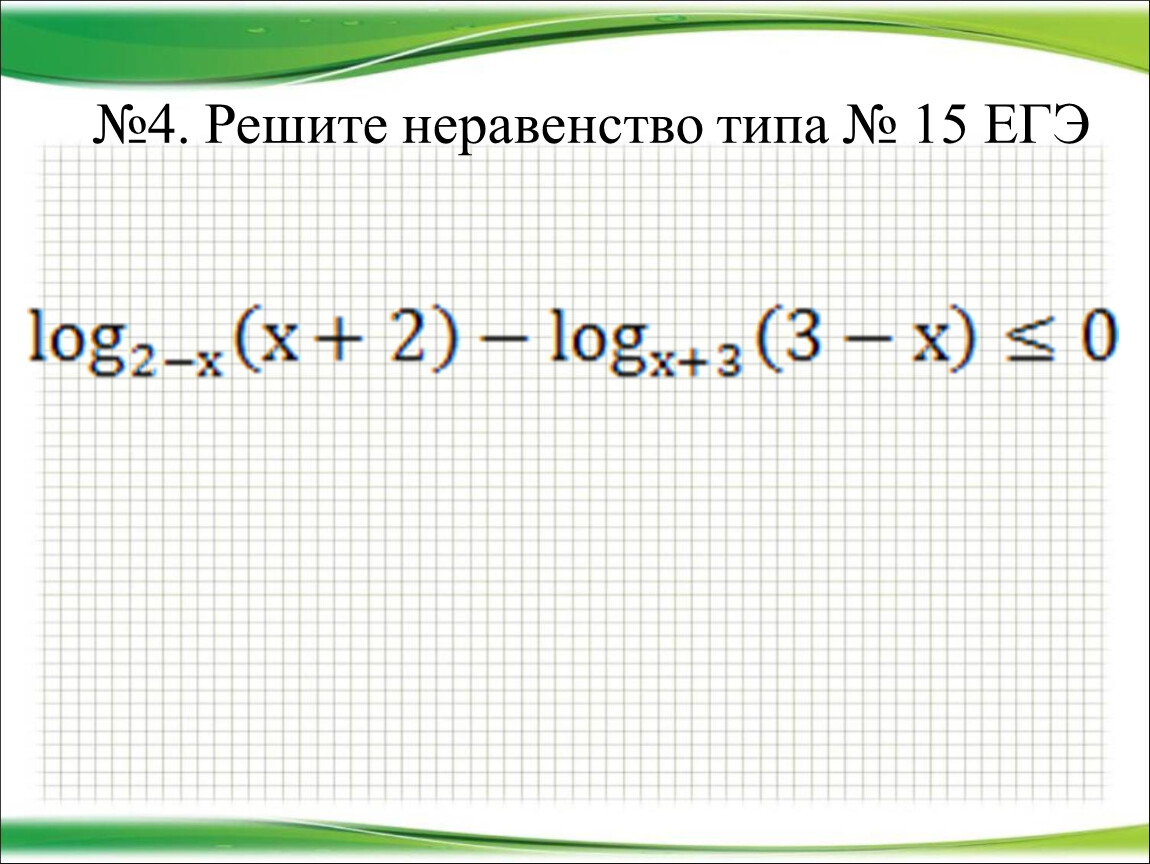 4. Решите неравенство МР: В-23, №15 из сборника для подготовки к ЕГЭ-2017 под редакцией Ященко.