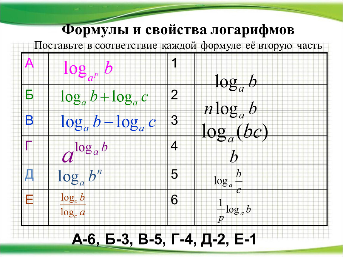 Формулы и свойства логарифмов