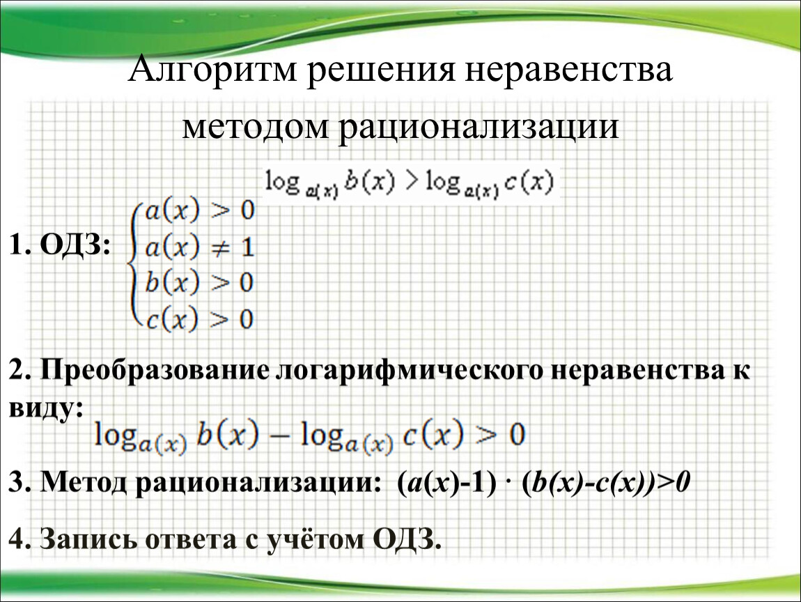 3. Метод рационализации: (a(x)-1) · (b(x)-c(x))>0