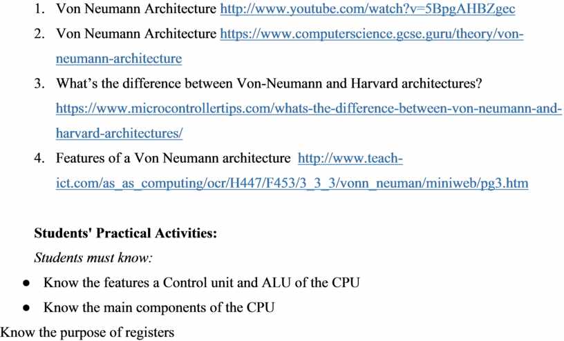 5. Features of a Von Neumann architecture http://www.teach-ict.com/as_as_computing/ocr/H447/F453/3_3_3/vonn_neuman/miniweb/pg3.htm