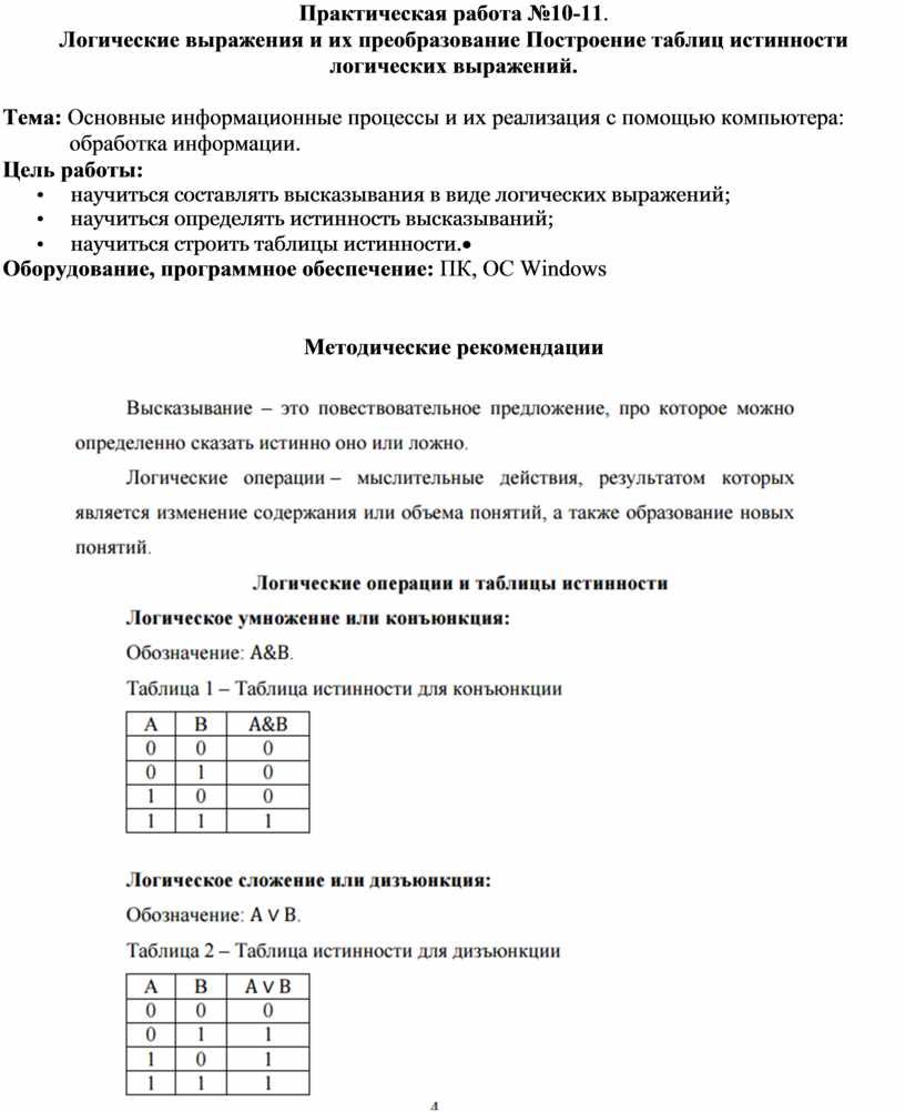 Логические выражения и их преобразование Построение таблиц истинности логических выражений.