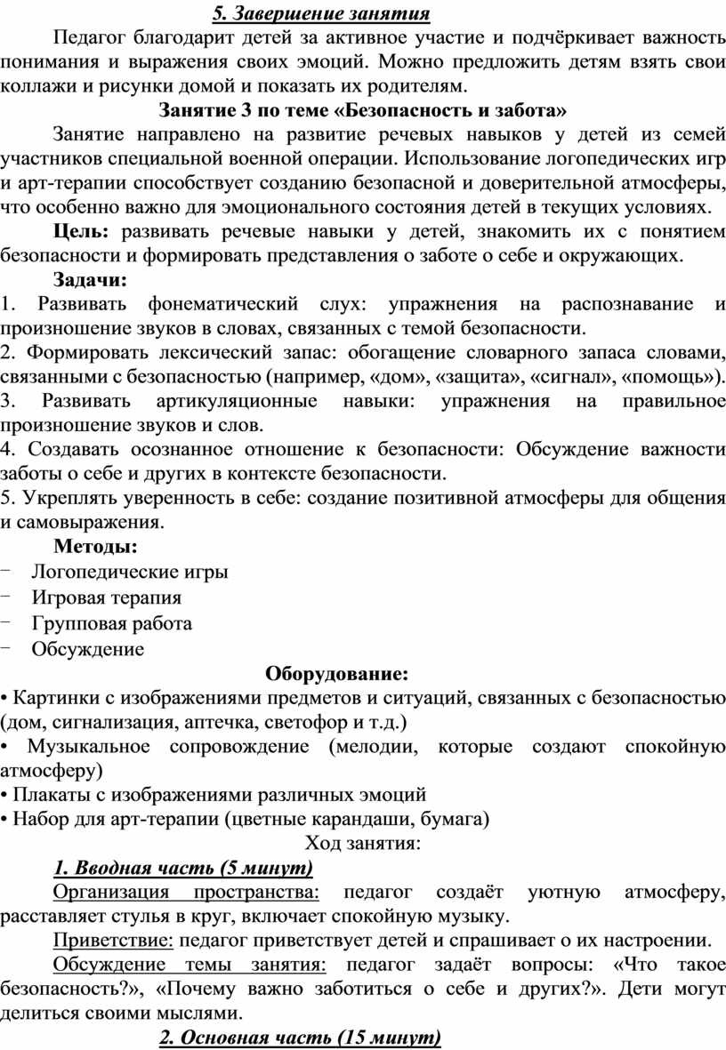Подведение итогов: педагог акцентирует внимание на важности безопасности и заботы о себе и окружающих. Он может сказать: «Каждый из нас может заботиться о своей безопасности и безопасности других. Это очень важно!».
