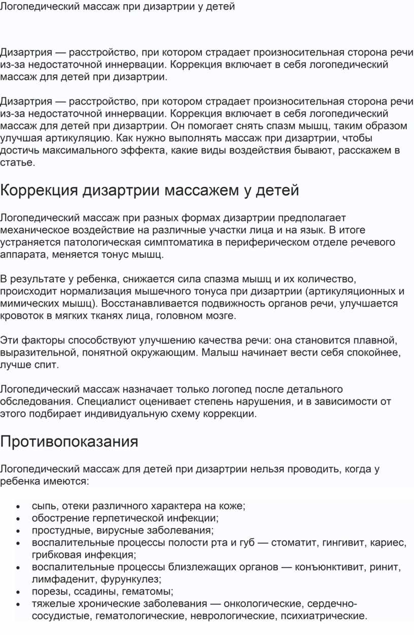 Логопедический массаж для детей при дизартрии нельзя проводить, когда у ребенка имеются: