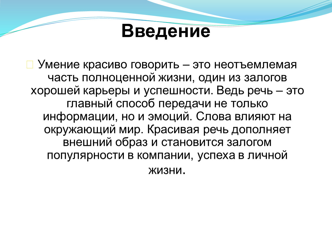 Умение красиво говорить – это неотъемлемая часть полноценной жизни, один из залогов хорошей карьеры и успешности. Ведь речь – это главный способ передачи не только информации, но и эмоций. Слова влияют на окружающий мир. Красивая речь дополняет внешний образ и становится залогом популярности в компании, успеха в личной жизни.