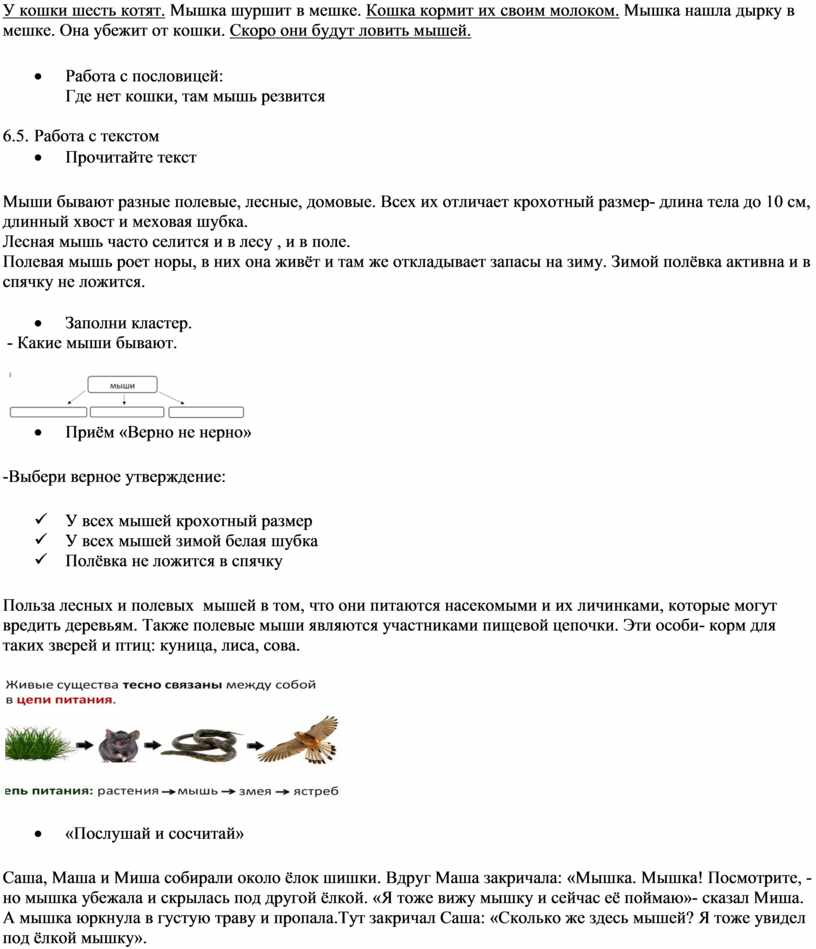 6.5. Работа с текстом · Прочитайте текст Мыши бывают разные полевые, лесные, домовые. Всех их отличает крохотный размер- длина тела до 10 см, длинный хвост и меховая шубка. Лесная мышь часто селится и в лесу , и в поле. Полевая мышь роет норы, в них она живёт и там же откладывает запасы на зиму. Зимой полёвка активна и в спячку не ложится.