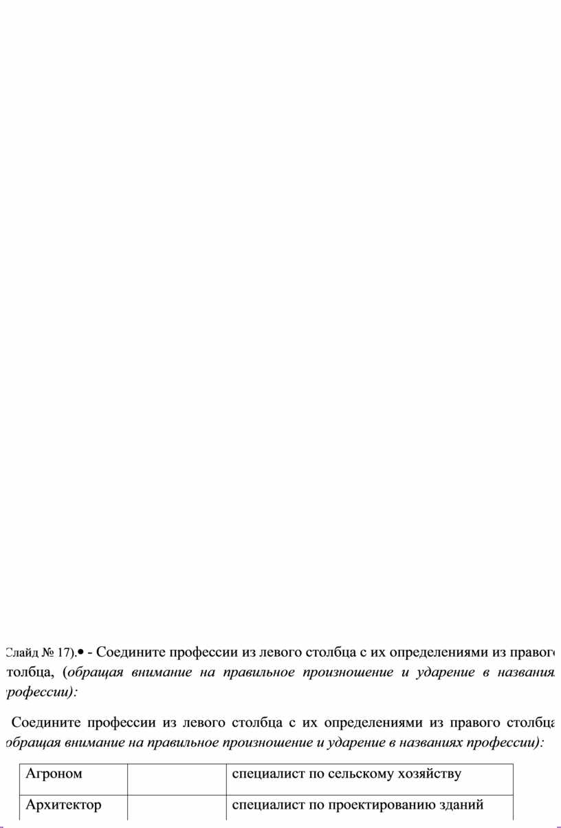 - Соедините профессии из левого столбца с их определениями из правого столбца, (обращая внимание на правильное произношение и ударение в названиях профессии):