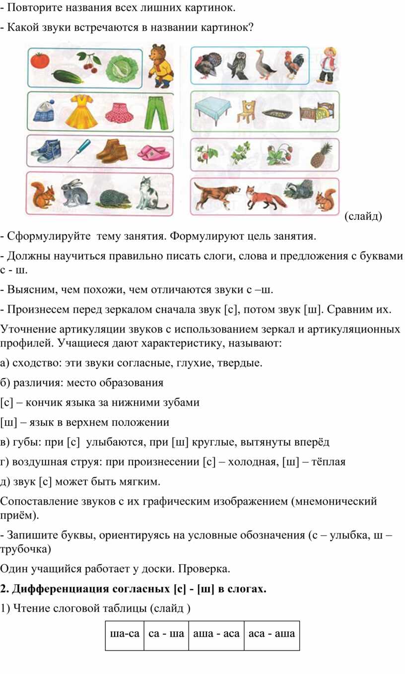 2. Дифференциация согласных [с] - [ш] в слогах.