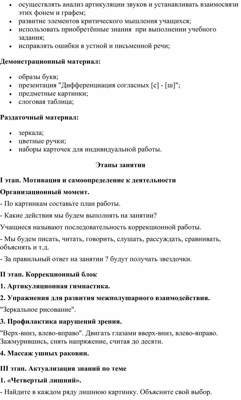 Логопедическое занятие во 2 классе по теме «Дифференциация согласных С–Ш».