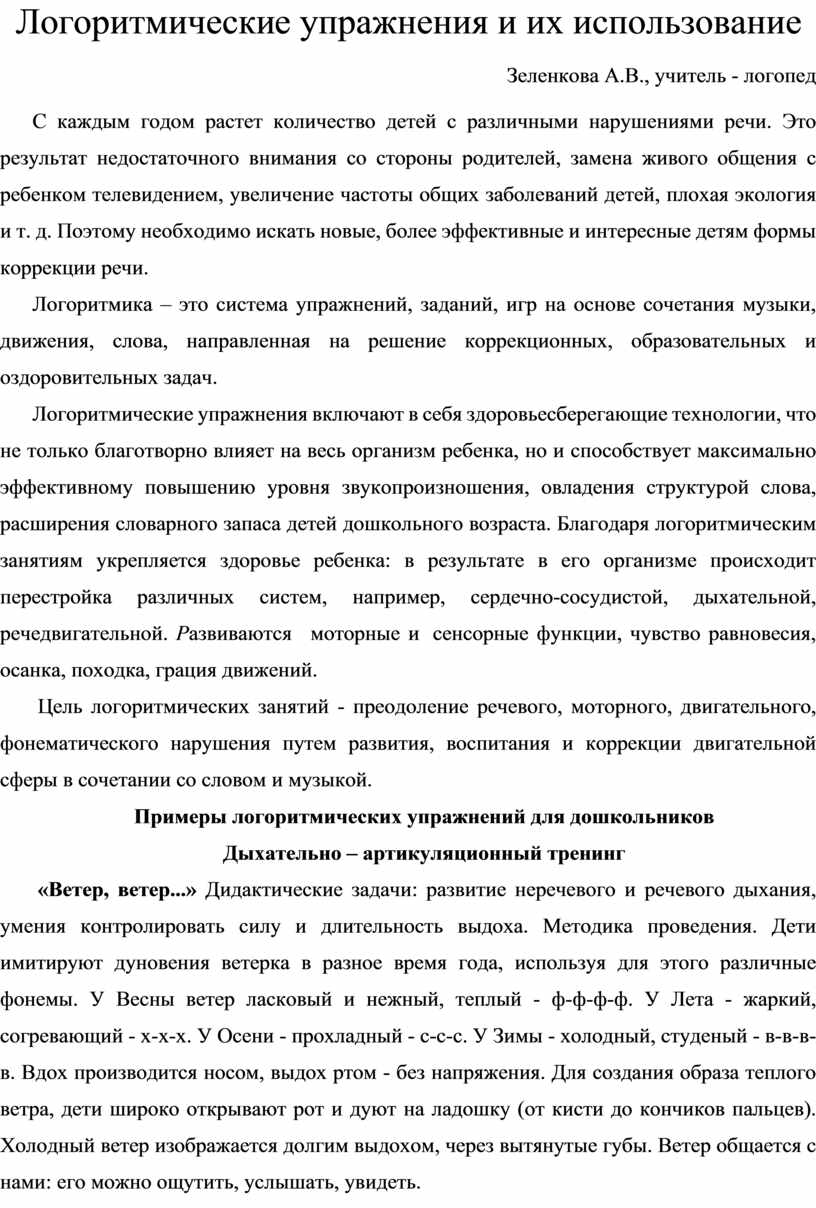 Логоритмические упражнения и их использование