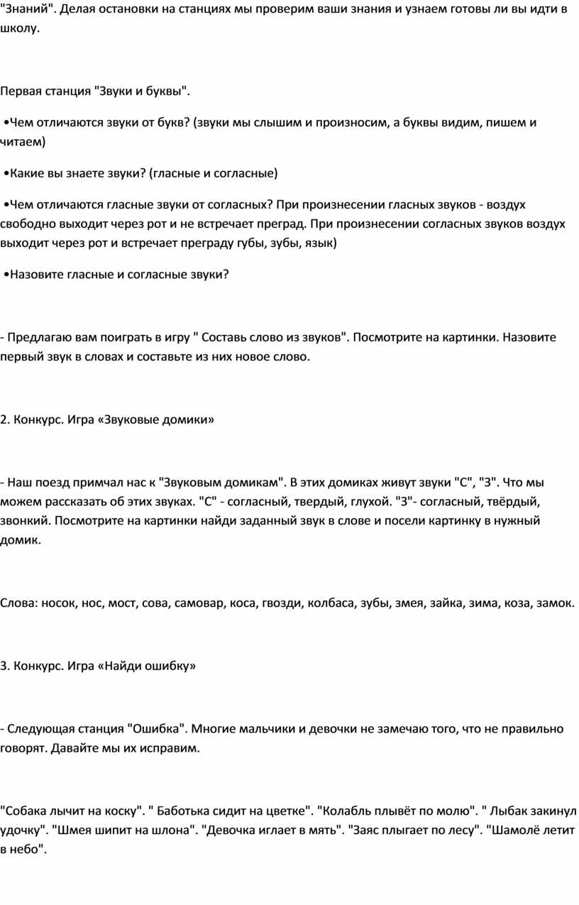 - Ребята вы уже готовитесь пойти в школу. А скажите, что делают дети в школе? (читают, пишут, считают). А вот мы сейчас и проверим готовы ли вы идти в школу. Сегодня вёселый поезд в страну "Знаний". Делая остановки на станциях мы проверим ваши знания и узнаем готовы ли вы идти в школу.