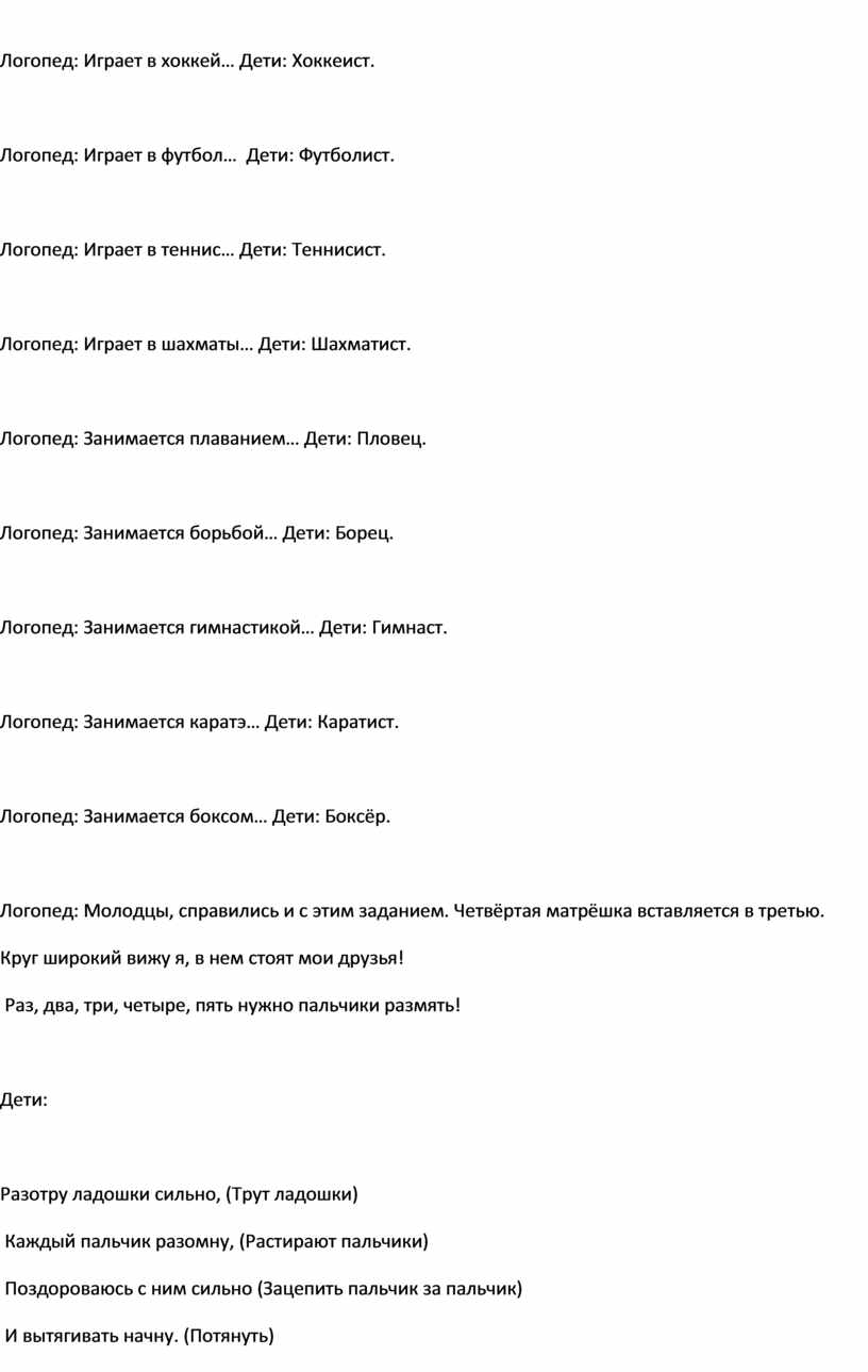 (Речевое задание «Назови спортсмена»; словообразование существительных)
