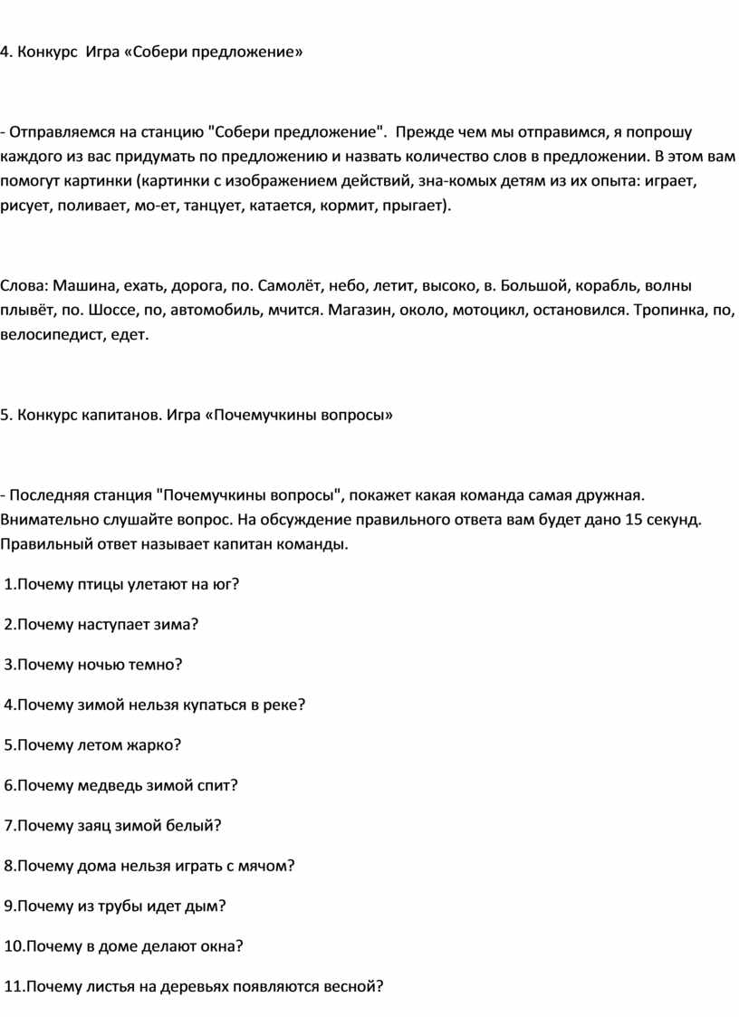 5. Конкурс капитанов. Игра «Почемучкины вопросы»