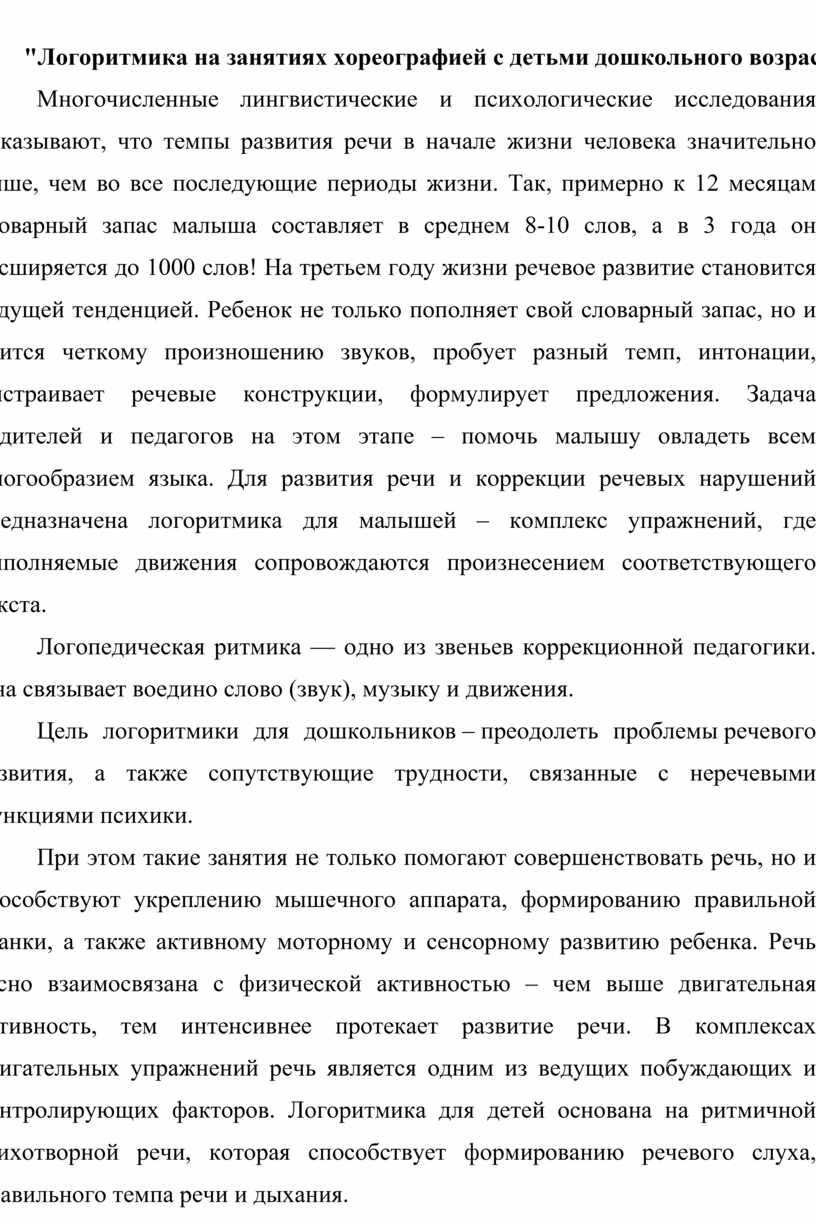 "Логоритмика на занятиях хореографией с детьми дошкольного возраста"