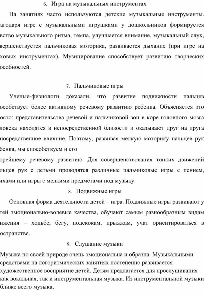 скорейшему речевому развитию. Для совершенствования тонких движений пальцев рук с детьми проводятся различные пальчиковые игры с пением, стихами или игры с мелкими предметами под музыку.