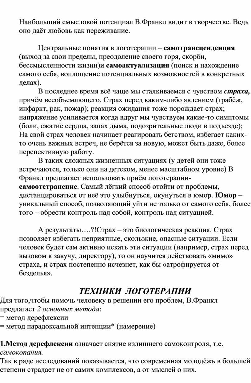 1.Метод дерефлексии означает снятие излишнего самоконтроля, т.е. самокопания.