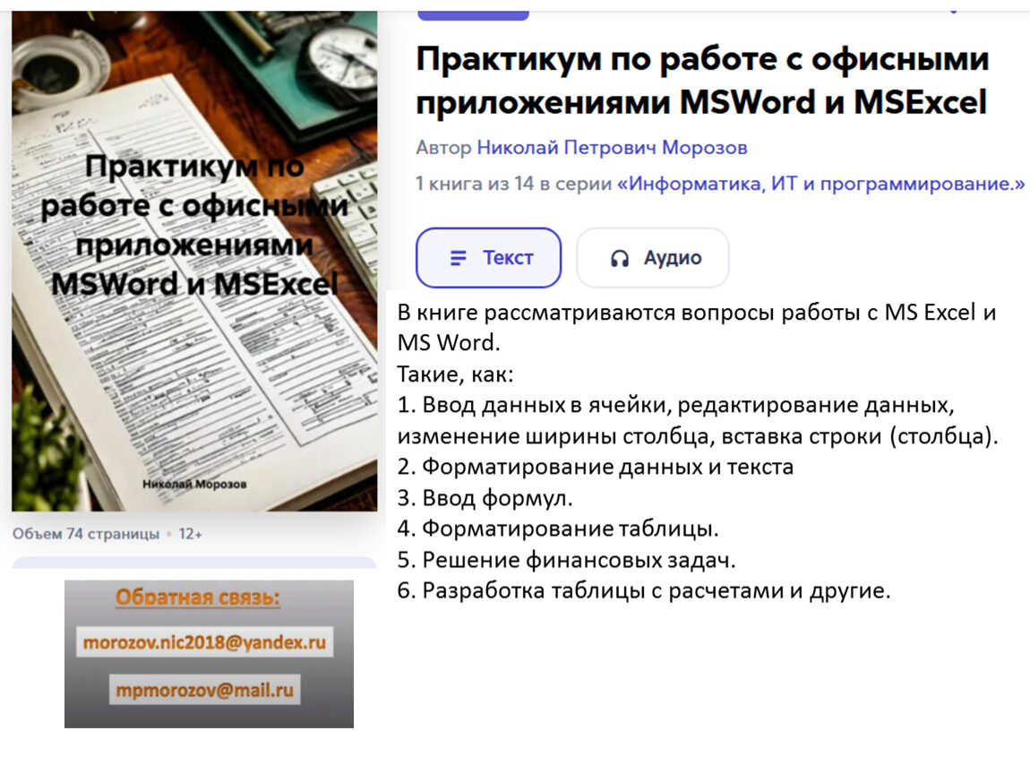 В книге рассматриваются вопросы работы с MS Excel и MS Word.