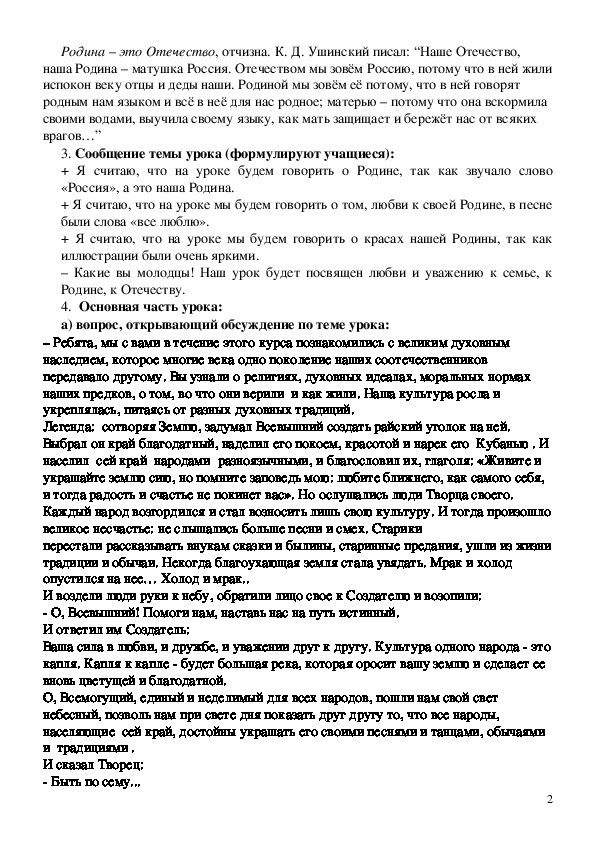 нашим Отечеством?Родина – это Отечество, отчизна. К. Д. Ушинский писал: “Наше Отечество,