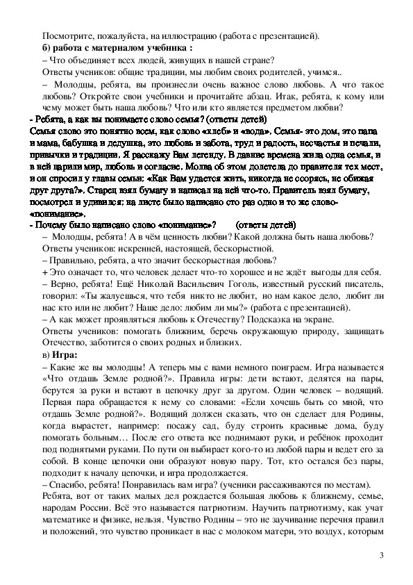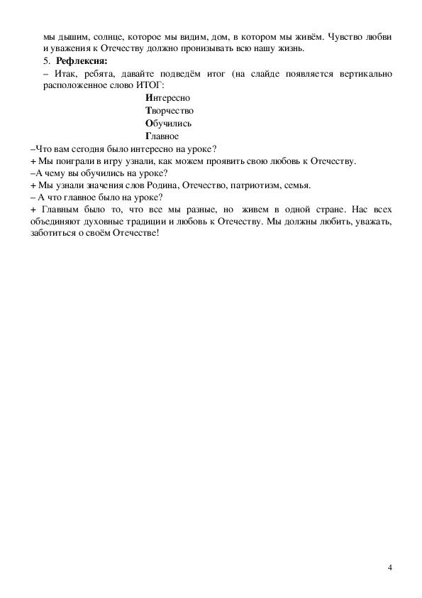 + Я считаю, что на уроке будем говорить о Родине, так как звучало слово
