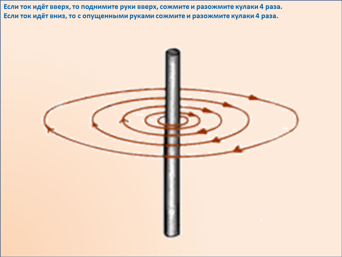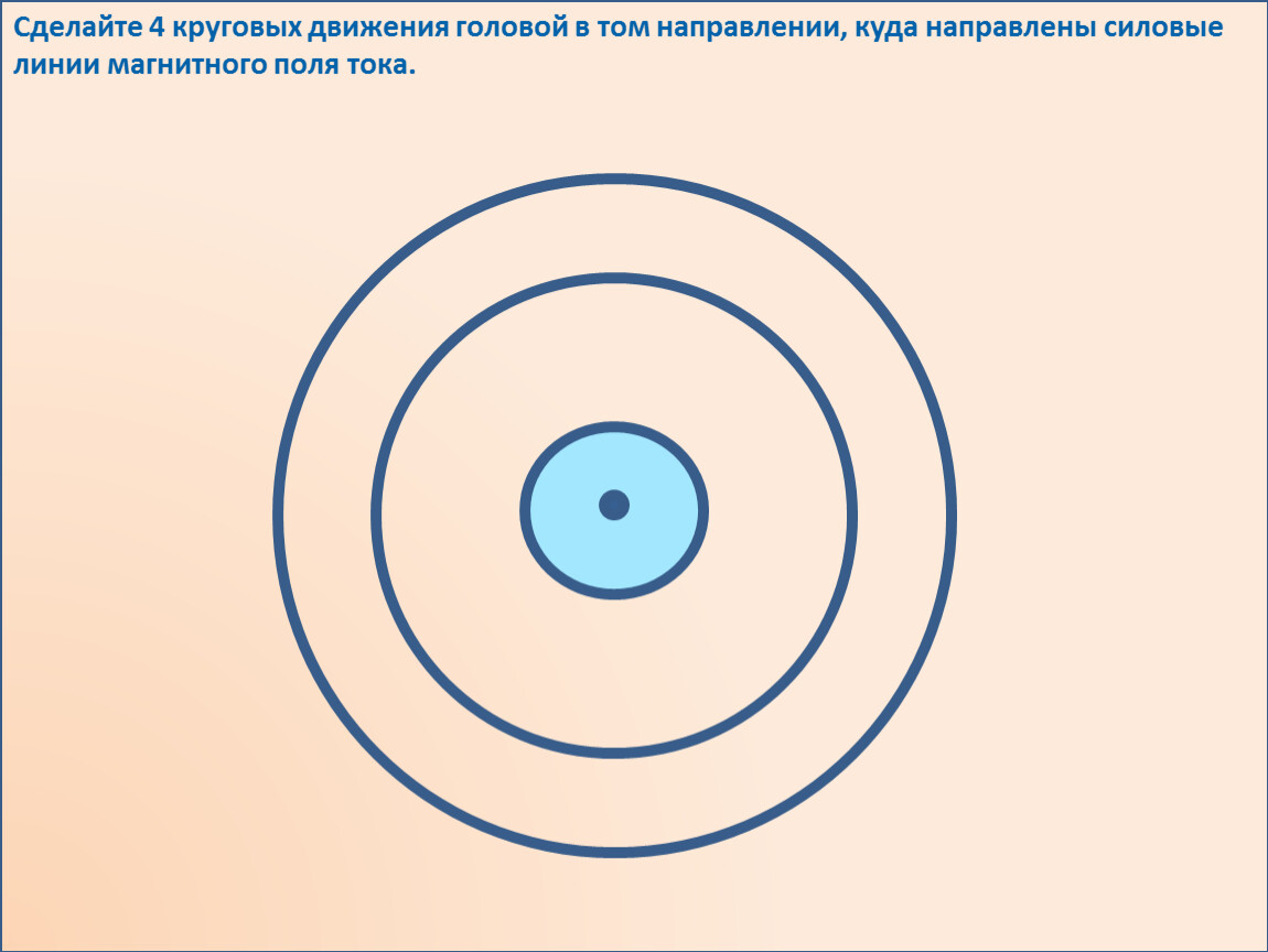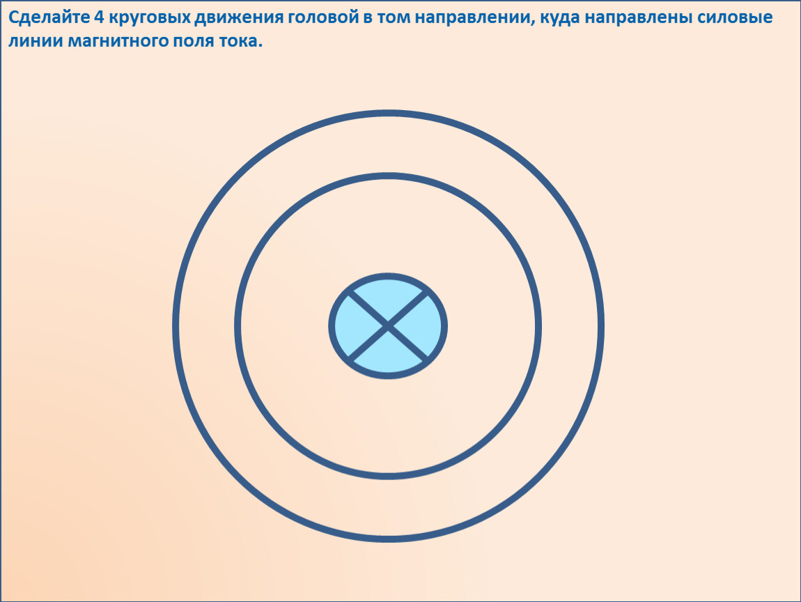 Сделайте 4 круговых движения головой в том направлении, куда направлены силовые линии магнитного поля тока.