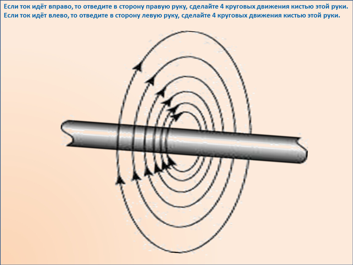 Если ток идёт вправо, то отведите в сторону правую руку, сделайте 4 круговых движения кистью этой руки.