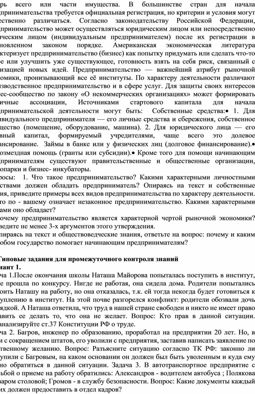 Правовое положение субъектов предпринимательской деятельности |