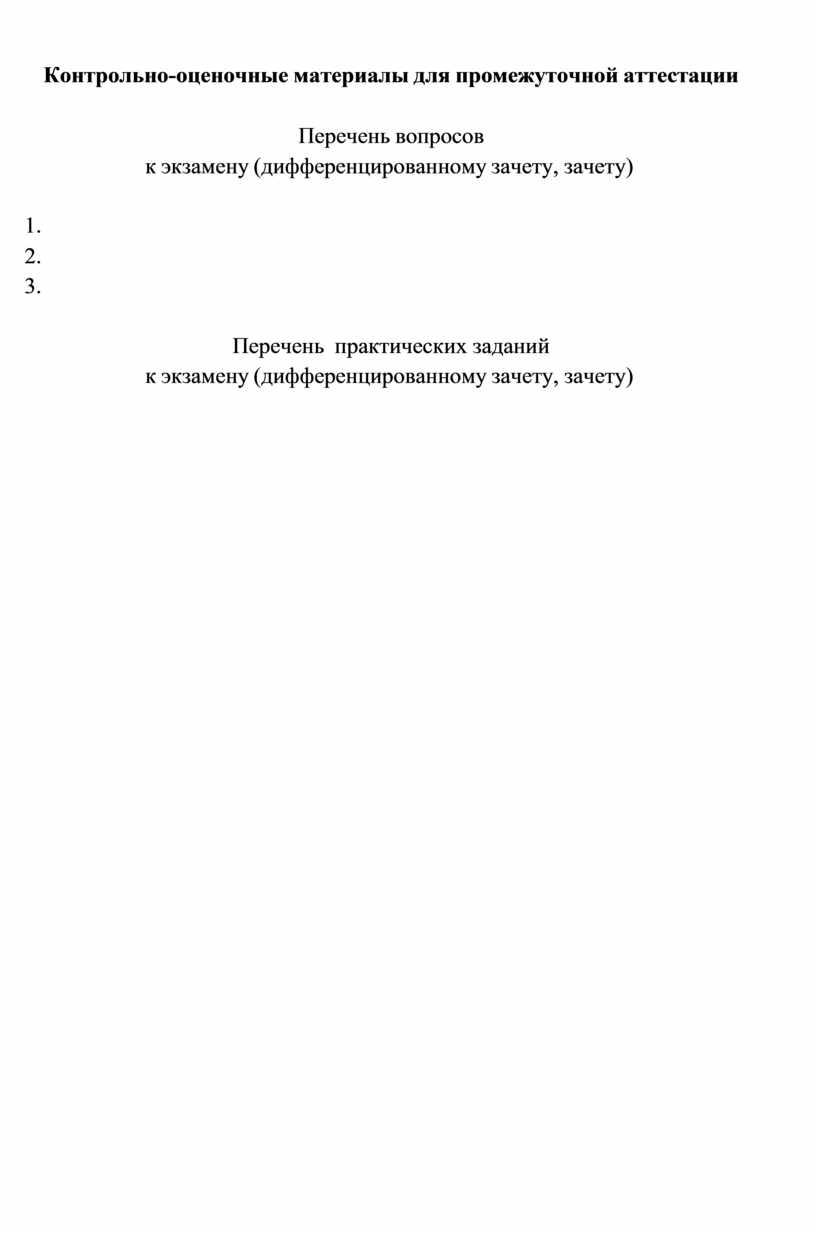 к экзамену (дифференцированному зачету, зачету)
