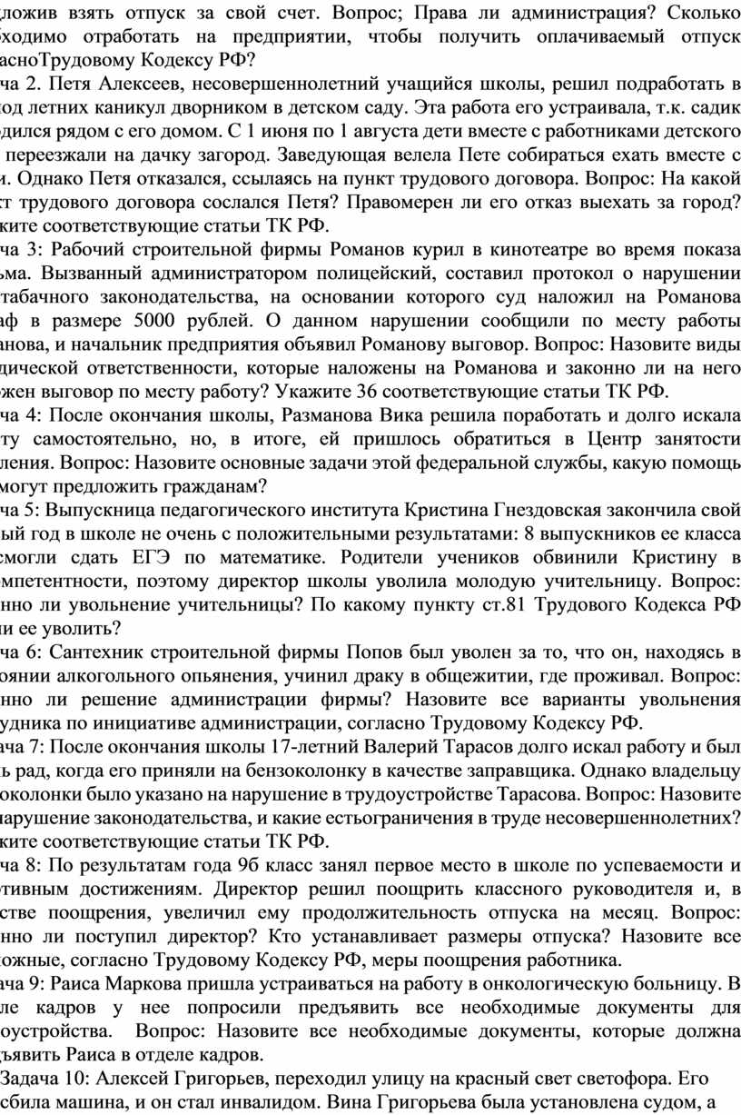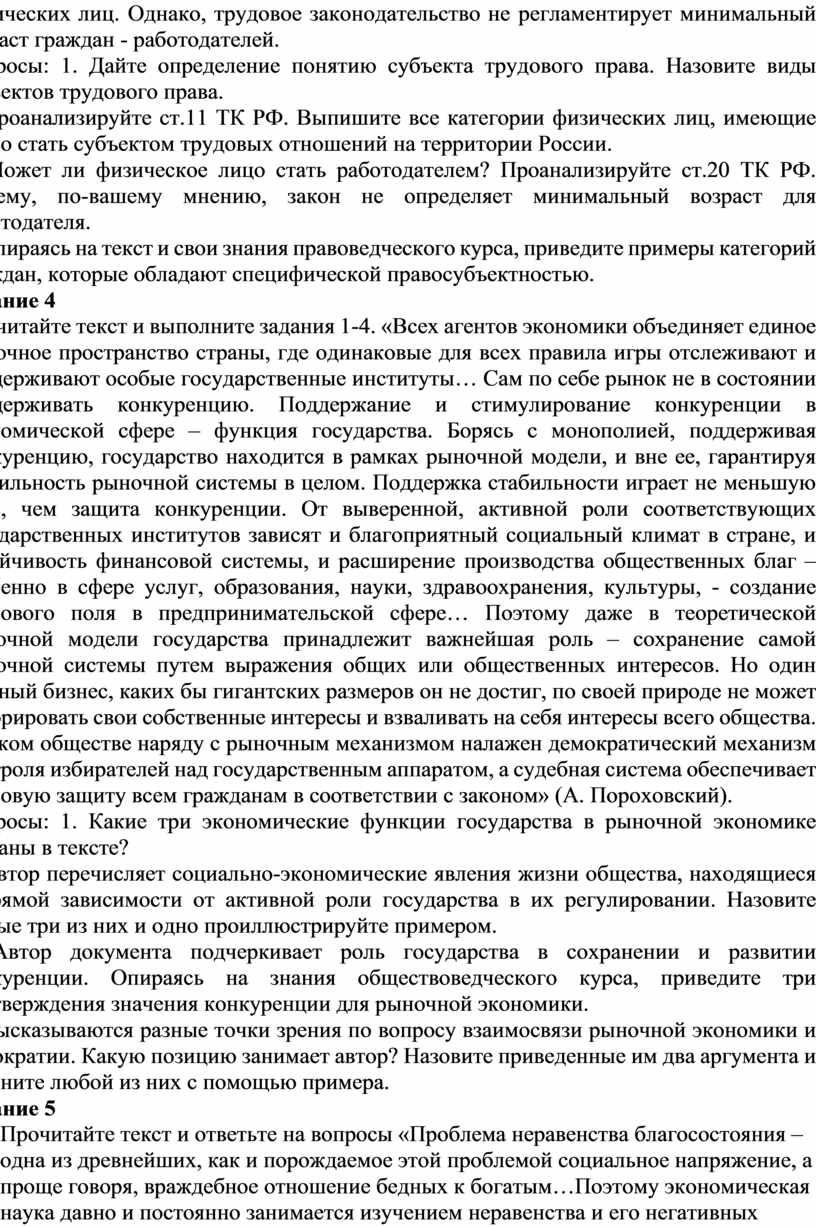 Прочитайте текст и выполните задания. «Право, как система общественных отношений, имеет две стороны: субъекты и объекты. Субъектами правоотношений являются физические и юридические лица. Объектами правоотношений являются отрасли права (уголовного, гражданского, административного, трудового, семейного и прочее). Участники правоотношений должны обладать правосубъектностью, т.е. предусмотренную нормами права способность лица вступать в правовые отношения с другими участниками (физическими, юридическими лицами, государством). Правосубъектность обладает такими юридическими свойствами как правоспособность и дееспособность. Правоспособность – это способность лица (субъекта) иметь права и нести юридические обязанности. Правоспособность физических лиц возникает в момент их рождения и прекращается со смертью. Правоспособность юридических лиц возникает с момента их государственной регистрации. Дееспособность - это предусмотренная нормами права способность субъекта права собственными действиями осуществлять права и исполнять обязанности. Правоспособность и дееспособность не всегда совпадают. Все люди правоспособны, однако не все они одновременно дееспособны. И, напротив, все дееспособные люди являются правоспособными. Дееспособность физического лица возникает постепенно. Содержание и объем дееспособности зависят от нескольких факторов, в том числе: 1) От возраста субъекта. Различают: а) полную недееспособность от 0 до 7 лет, когда ребенок не может отвечать за свои действия; б) частичную дееспособность от 7 до 18 лет, когда подросток имеет право на определенные правовые действия; в) полная дееспособность по российскому законодательству наступает с 18 лет. 2) От состояния здоровья: недееспособность субъекта может быть признана только в результате судебного решения. 3) От законопослушности субъекта: лицо, совершившее преступление и находящееся в местах лишения свободы, ограничивается в дееспособности и не может реализовать ряд гражданских, политических и иных прав».