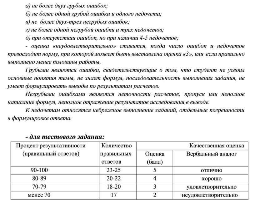 Грубыми являются ошибки, свидетельствующие о том, что студент не усвоил основные понятия темы, не знает формул, последовательность выполнения задания, не умеет формулировать выводы по результатам расчетов.