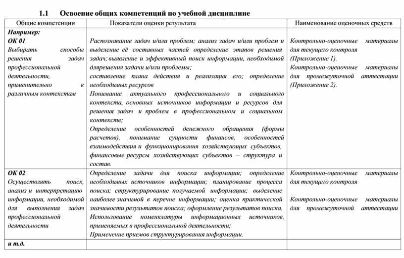 Фонд оценочных средств позволяет оценивать освоенные умения и усвоенные знания соответствующих общих компетенций: