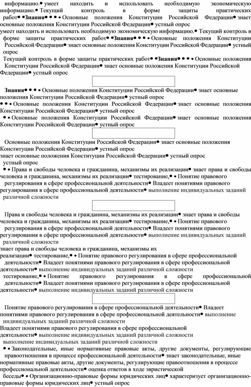 В результате аттестации по учебной дисциплине Правовое обеспечение профессиональной деятельности осуществляется комплексная проверка следующих умений и знаний: