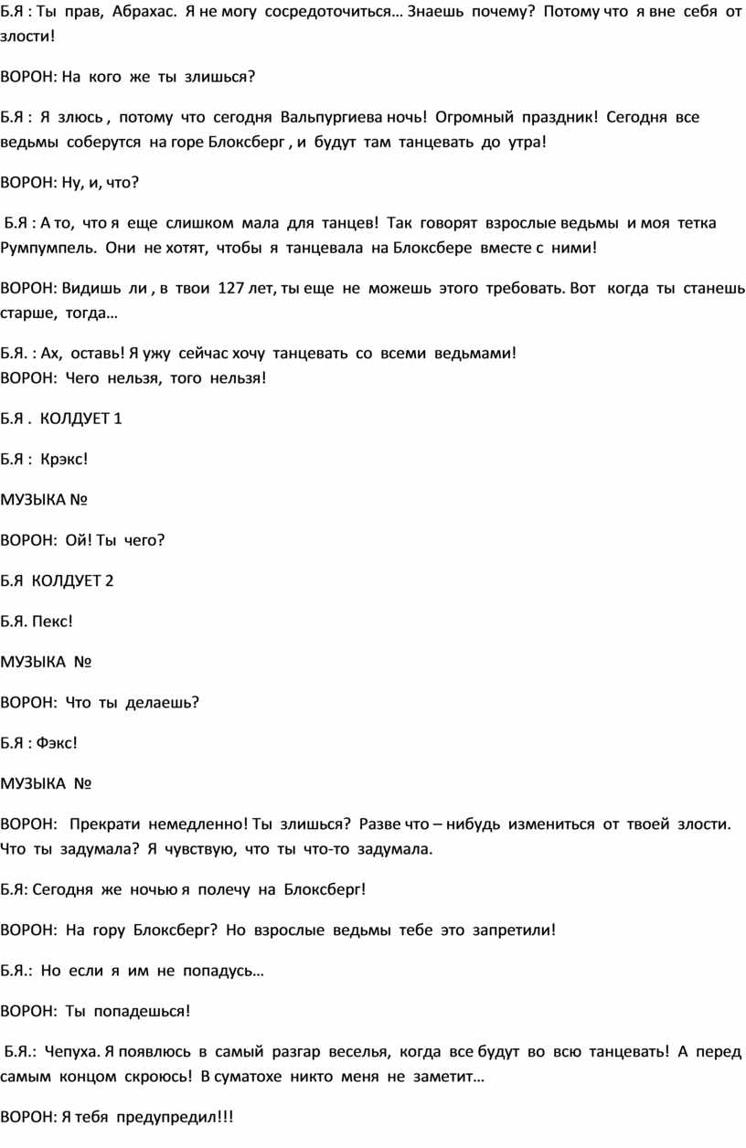 Б.Я : Я злюсь , потому что сегодня Вальпургиева ночь! Огромный праздник! Сегодня все ведьмы соберутся на горе Блоксберг , и будут там танцевать до утра!