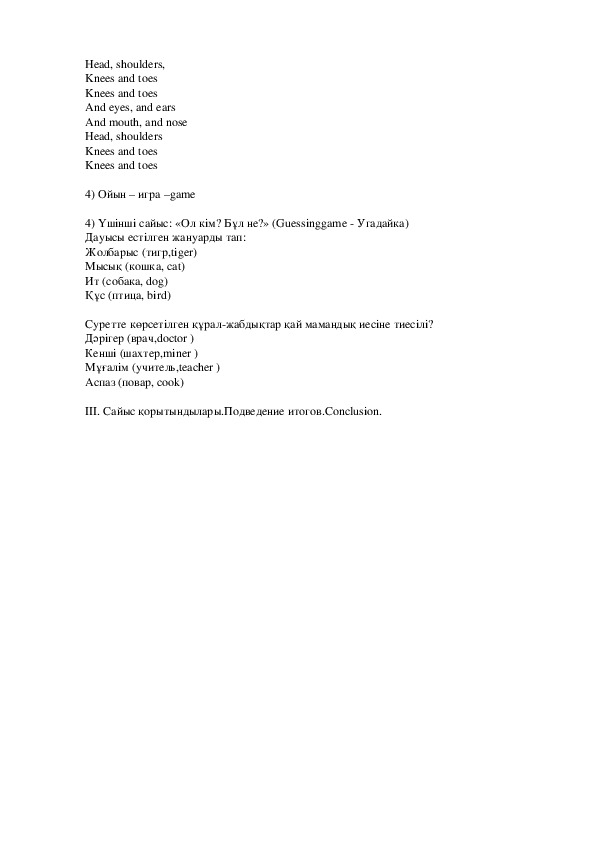 III. Cайыс қорытындылары.Подведение итогов.Conclusion.