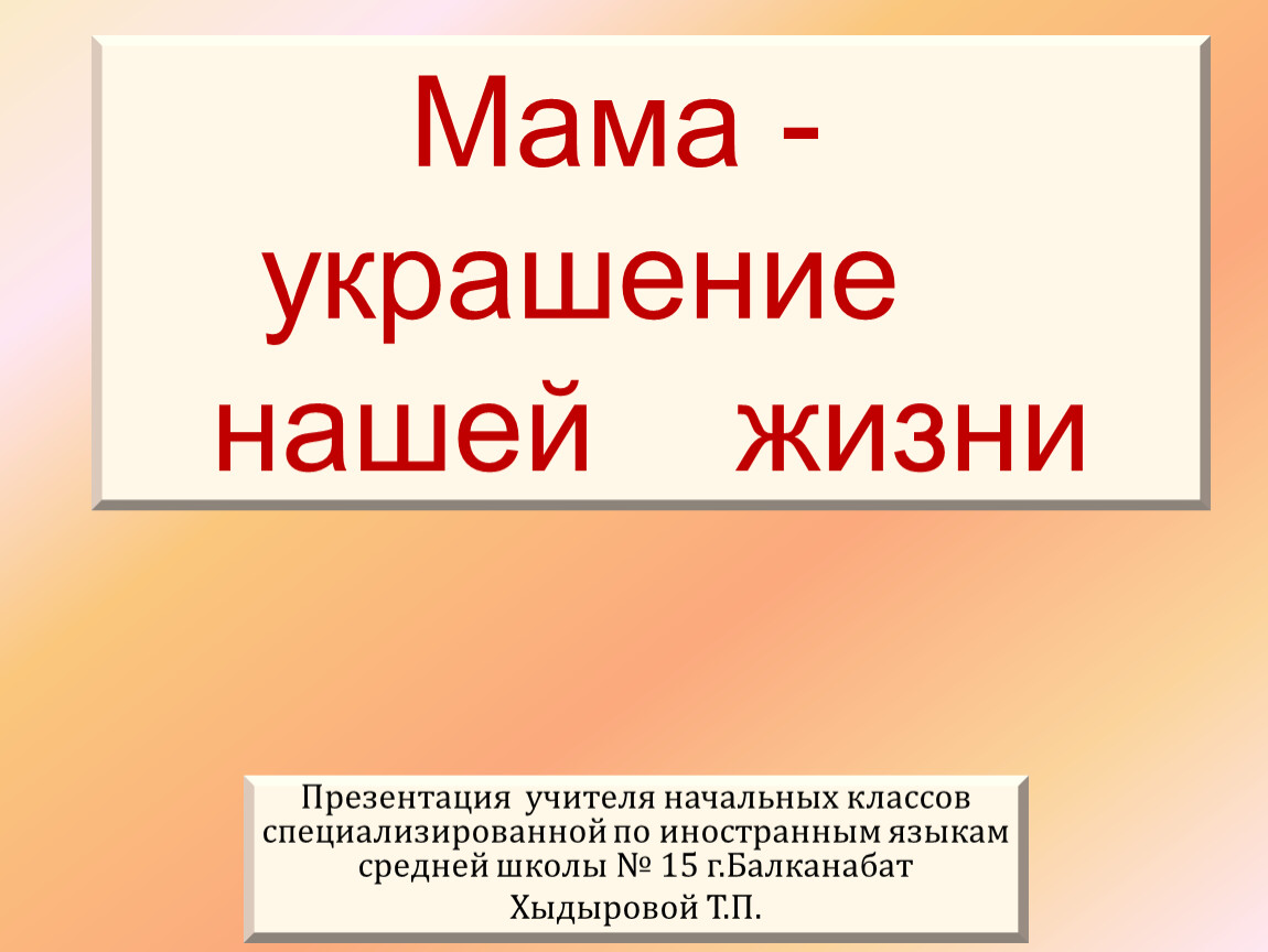 Презентация учителя начальных классов специализированной по иностранным языкам средней школы № 15 г.Балканабат