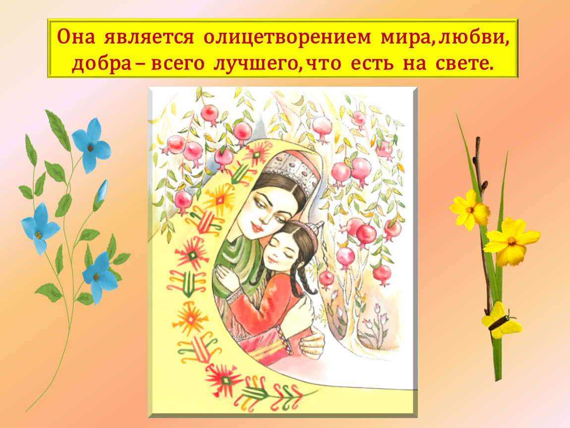 Весна олицетворяет пробуждение природы, женщина-мать является символом продолжения жизни на земле, мудрости, любви, нежности.