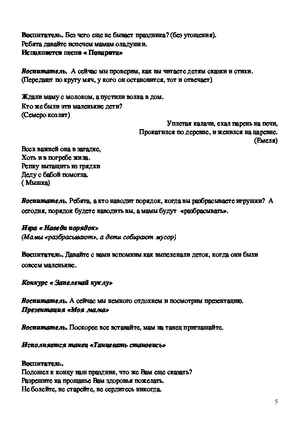 Воспитатель. Поскорее все вставайте, мам на танец приглашайте.